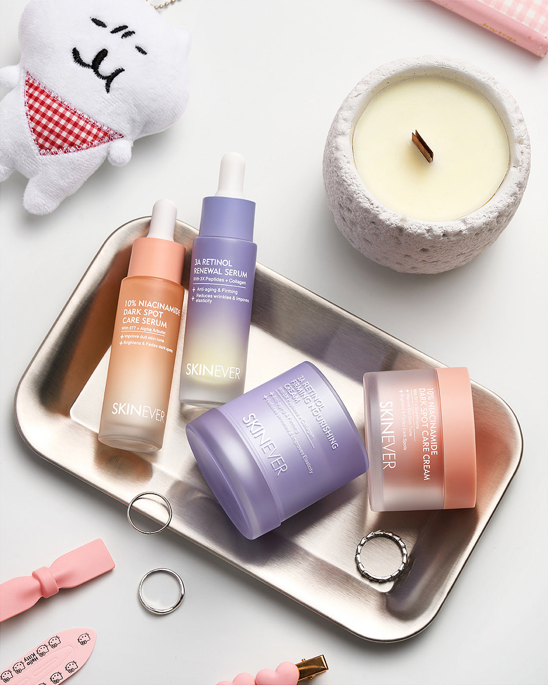 What it does: Retinol (Vitamin A) is one of the most researched and effective ingredients in skincare. Known for its powerful anti-aging benefits, it helps reduce the appearance of fine lines, wrinkles, and uneven texture. Retinol also supports cell turnover, revealing smoother, firmer, and more radiant skin over time.